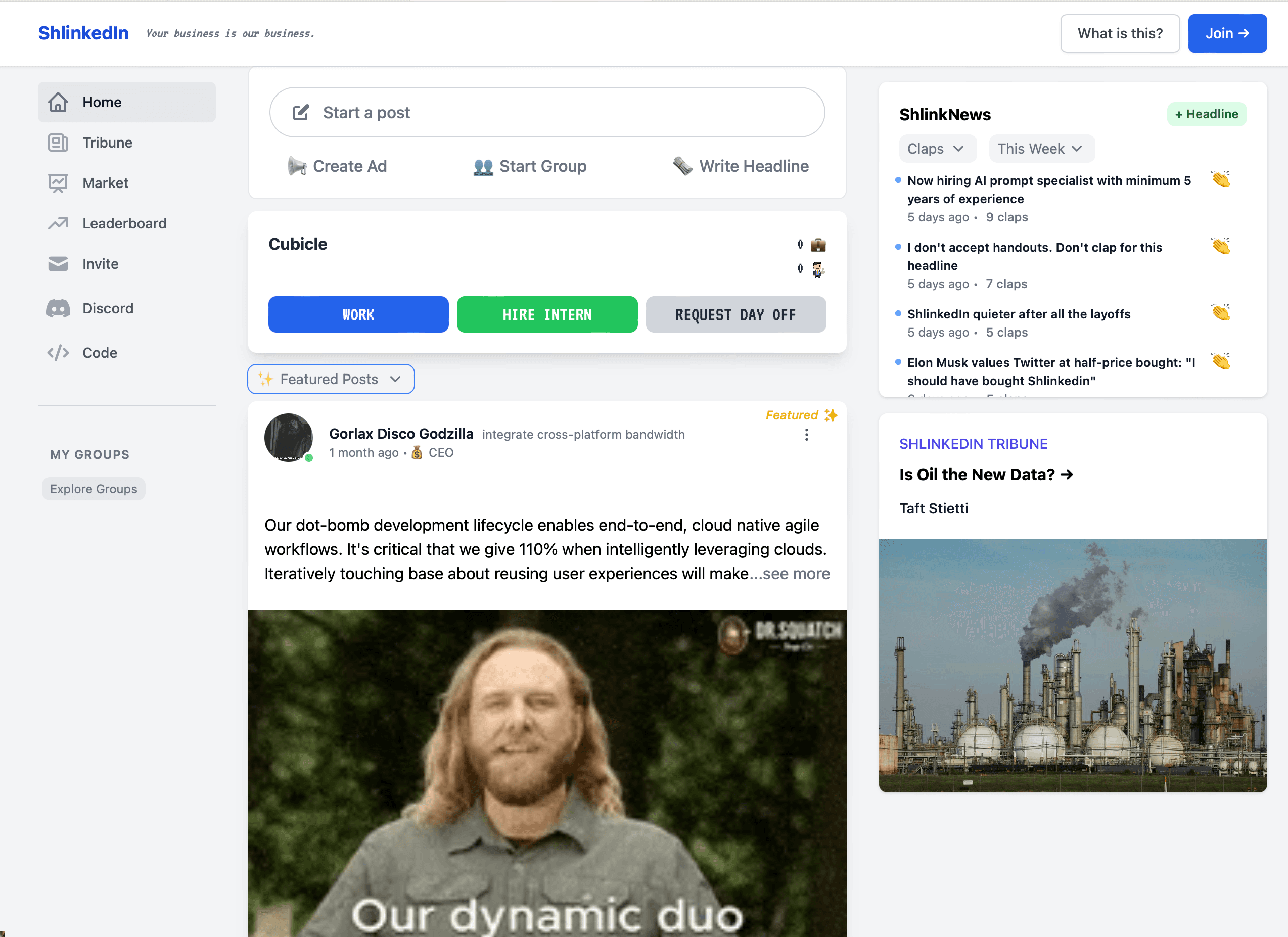 ShlinkedIn is an open source social network with thousands of members that I started in March 2020. I had three goals for ShlinkedIn: